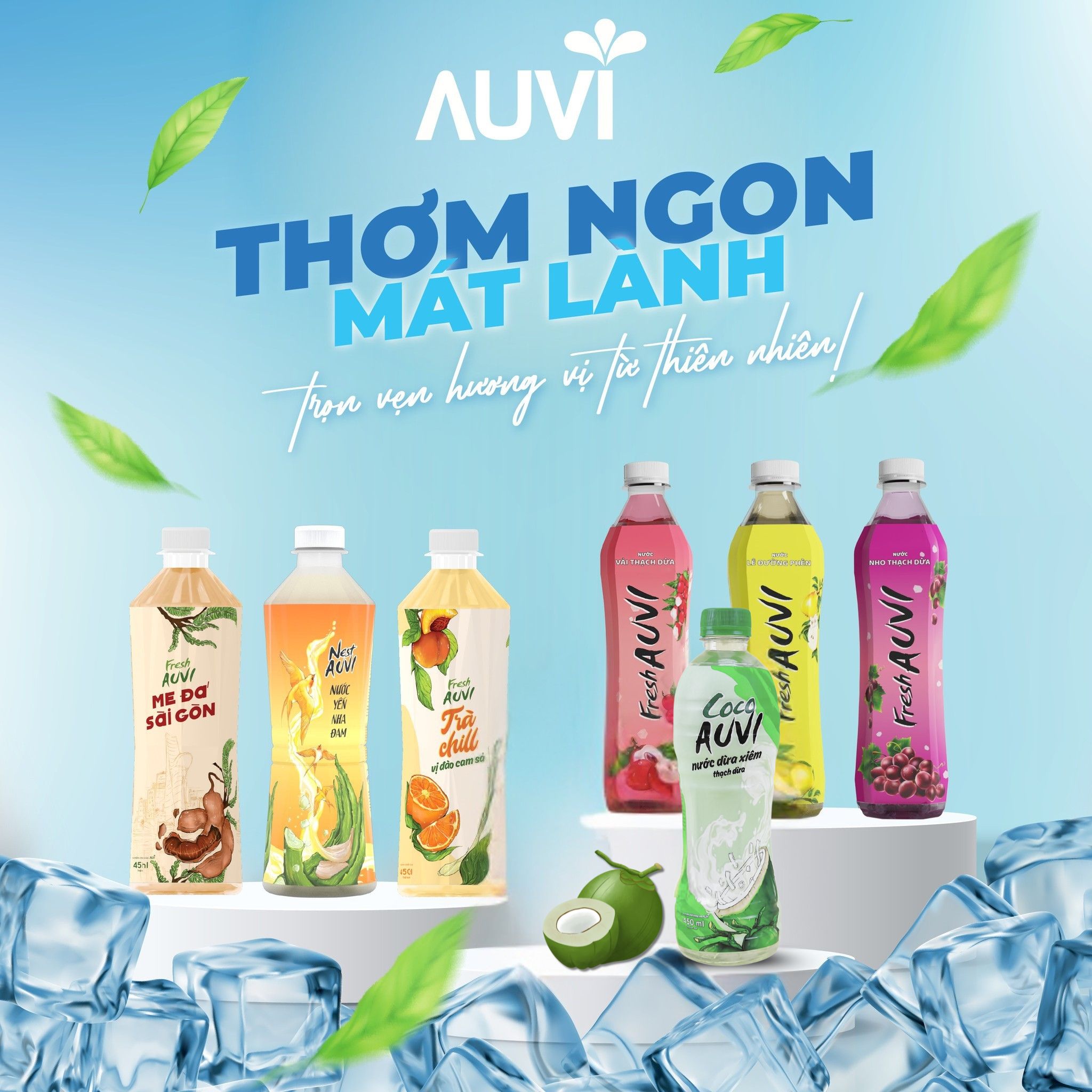 Các dòng đồ uống của AUVI WATER đều là những hương vị được yêu thích: trái cây tươi mát, dễ uống, phù hợp nhiều lứa tuổi và nhu cầu tiêu dùng.